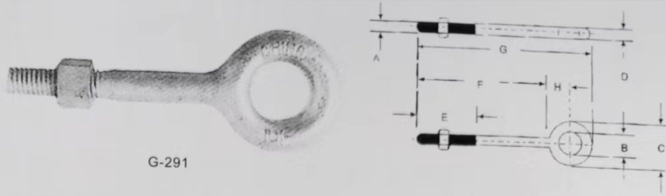 | Shank Dia.& Length (in.) | Woking Load Limit (lbs.) | Weight Per 100 (lbs.) | DIMENSIONS (in.) | |||||||