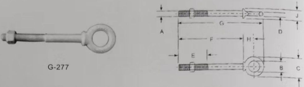| Shank Dia.& Length (in.) | Woking Load Limit (Ibs.) | Weight Per 100 (Ibs.) | DIMENSIONS (in.) | ||||||||